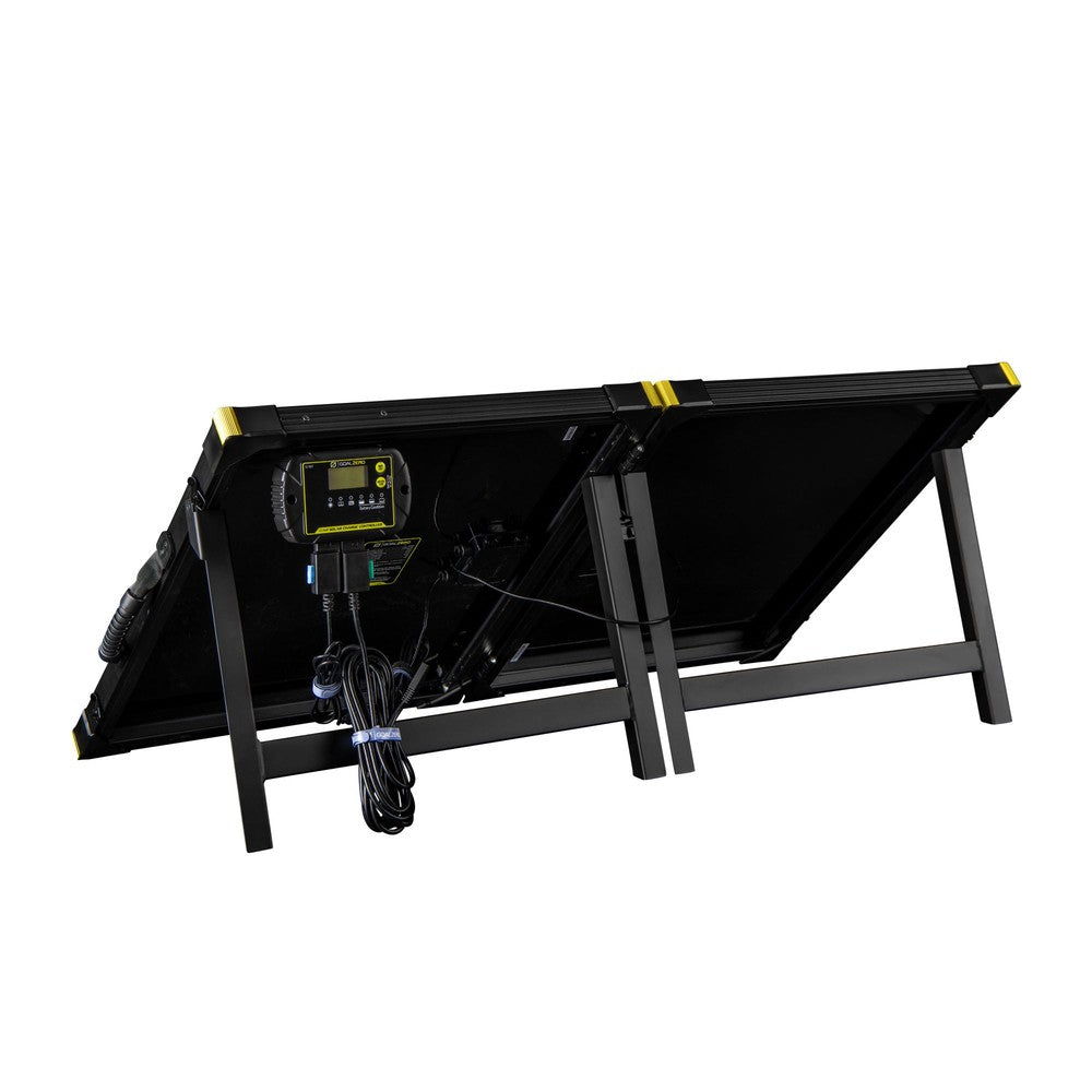 Designed for maximum portability. Includes a Boulder 100 Briefcase and 10-Amp Charge Controller to safely and efficiently charge 12V batteries. A canvas carrying bag and integrated kickstand offers easy setup anywhere.