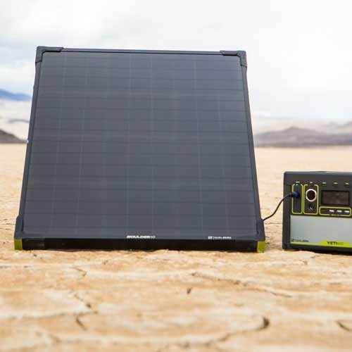Rugged, durable, rigid. Tempered glass and aluminum frame construction with added corner protection make this a perfect panel for a permanent installation. Ideal for recharging a Yeti 200X.
