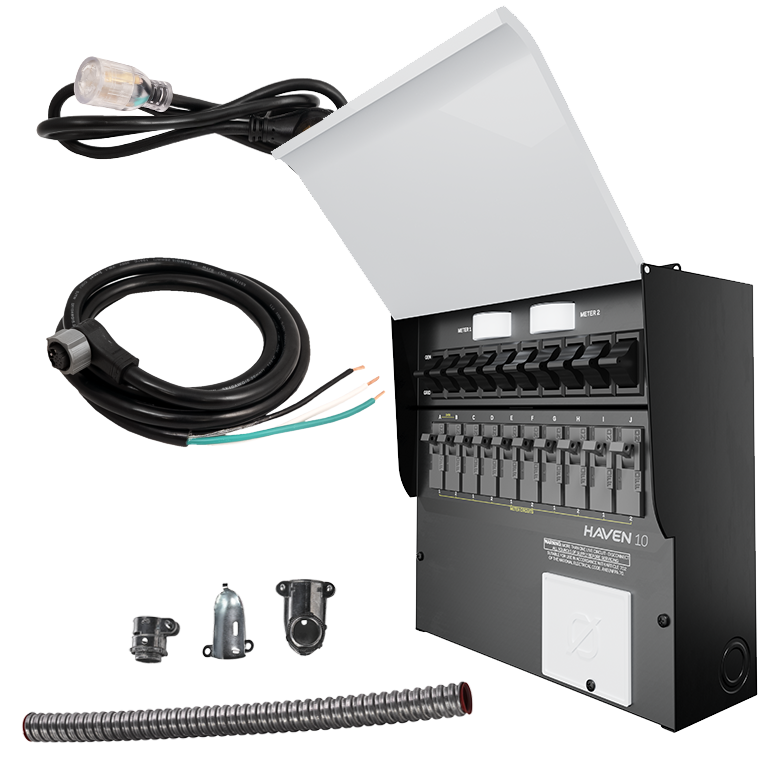 The Haven 10 is an affordable manual transfer switch that allows you to backup essential circuits during a power outage. Use it with your Yeti PRO 4000 to keep lights on, fridges cooling, and personal devices charged.